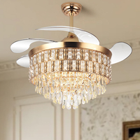 공장 복고풍 현대 홈 팬 호텔 샹들리에 램프 LED 크리스탈 갓 샹들리에 원격 제어 천장 팬 고급 조명